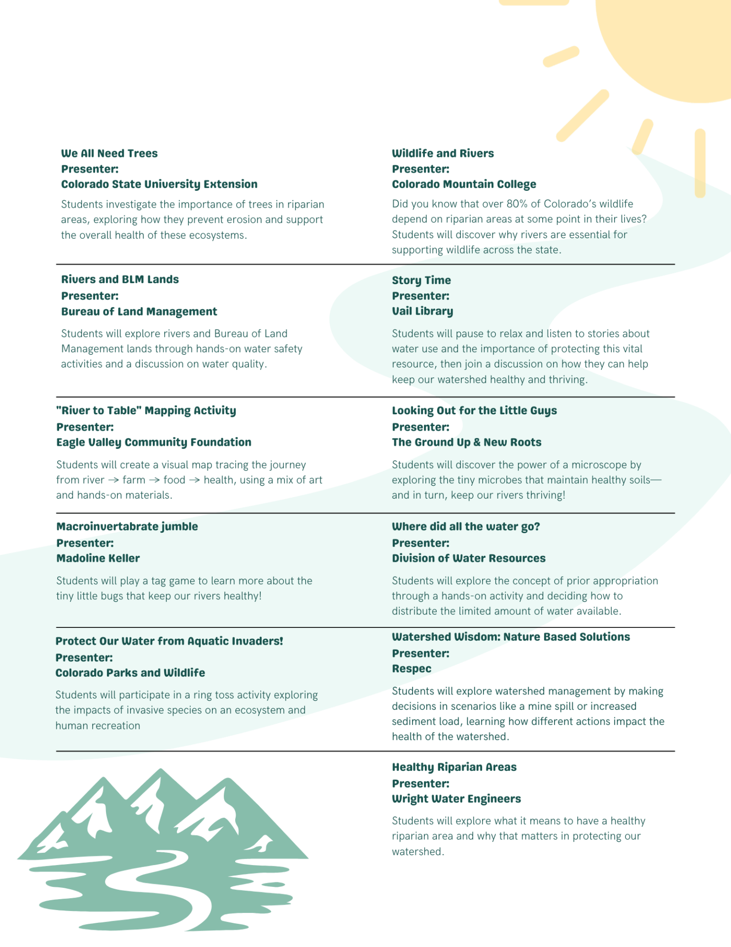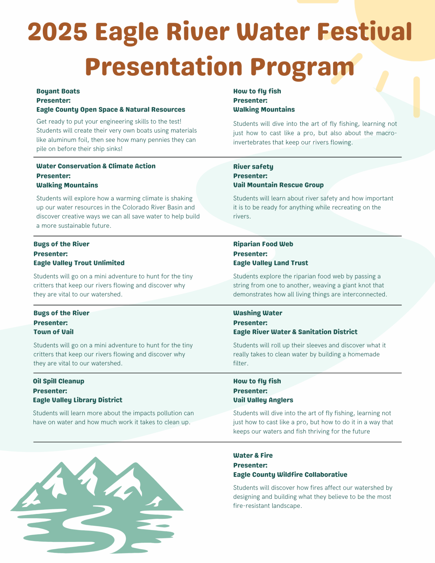 “This day is deeply meaningful to me. Outdoor education and hands-on activities are powerful tools for teaching youth, sparking curiosity, and inspiring the next generation of Colorado’s water leaders. Every day reminds us just how essential water is to our lives,” said Rose Sandell, Eagle River Coalition’s community engagement manager.